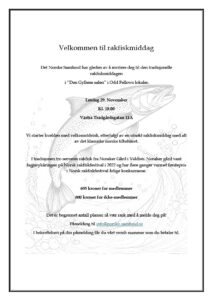 Det Norske Samfund har gleden av å invitere deg til den tradisjonelle rakfiskmiddagen i ‘’Den Gyllene salen’’ i Odd Fellows lokaler.